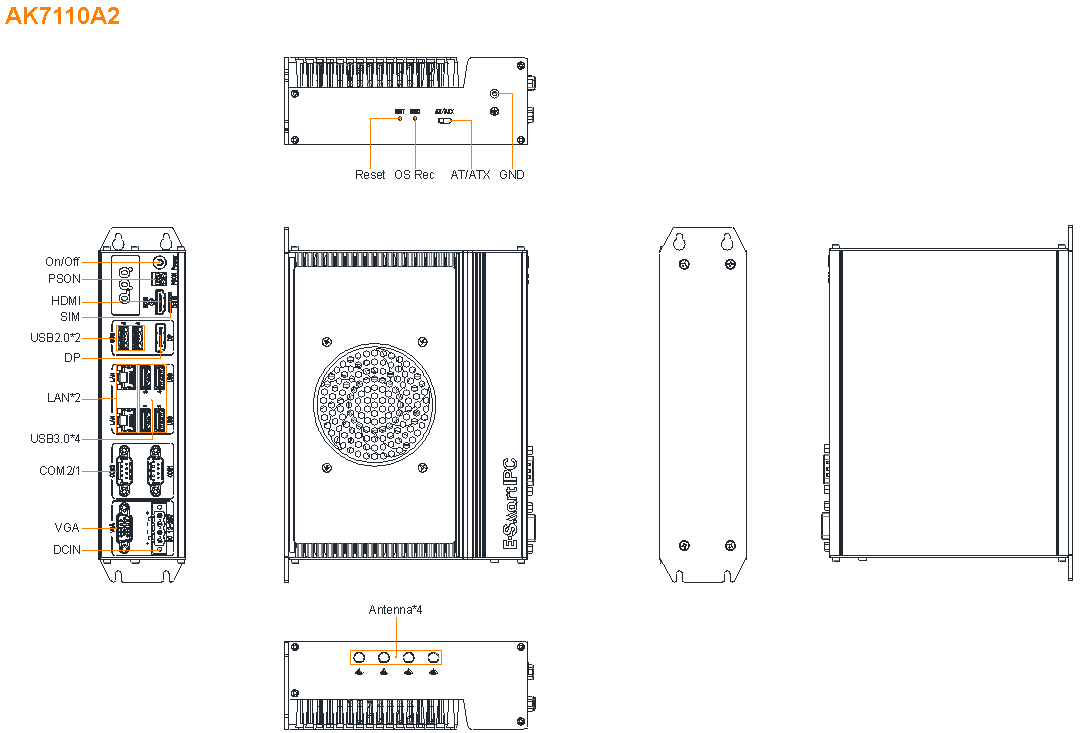 | ? | Button | 1 * Reset (Hold down 0.2 to 1s to restart, 3s to clear CMOS) 1 * OS Rec (system recovery) |
