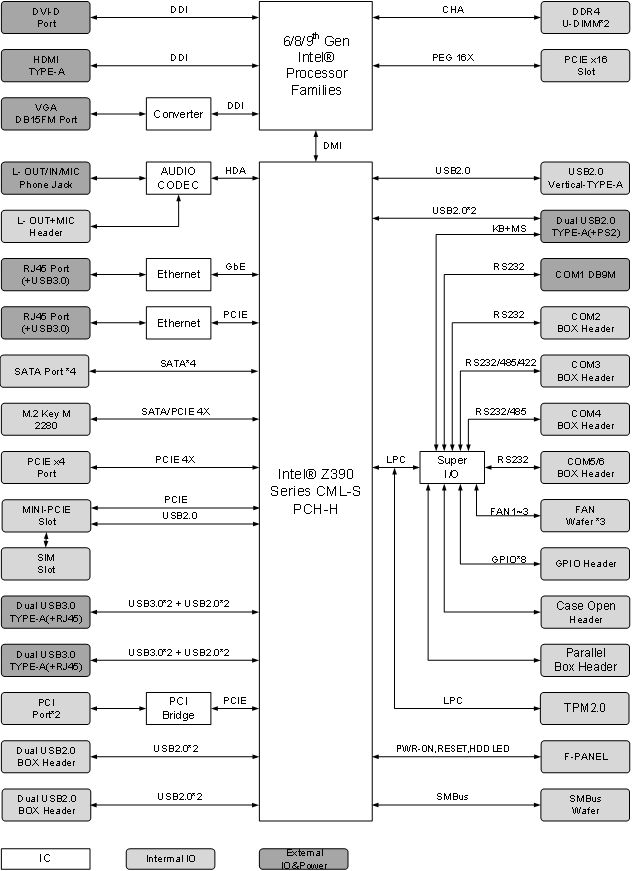 | 處理器系統 | 中央處理器 | 支持LGA1151 插槽的Intel? ?6/8/9代Core、Pentium??及 Celeron??處理器 |